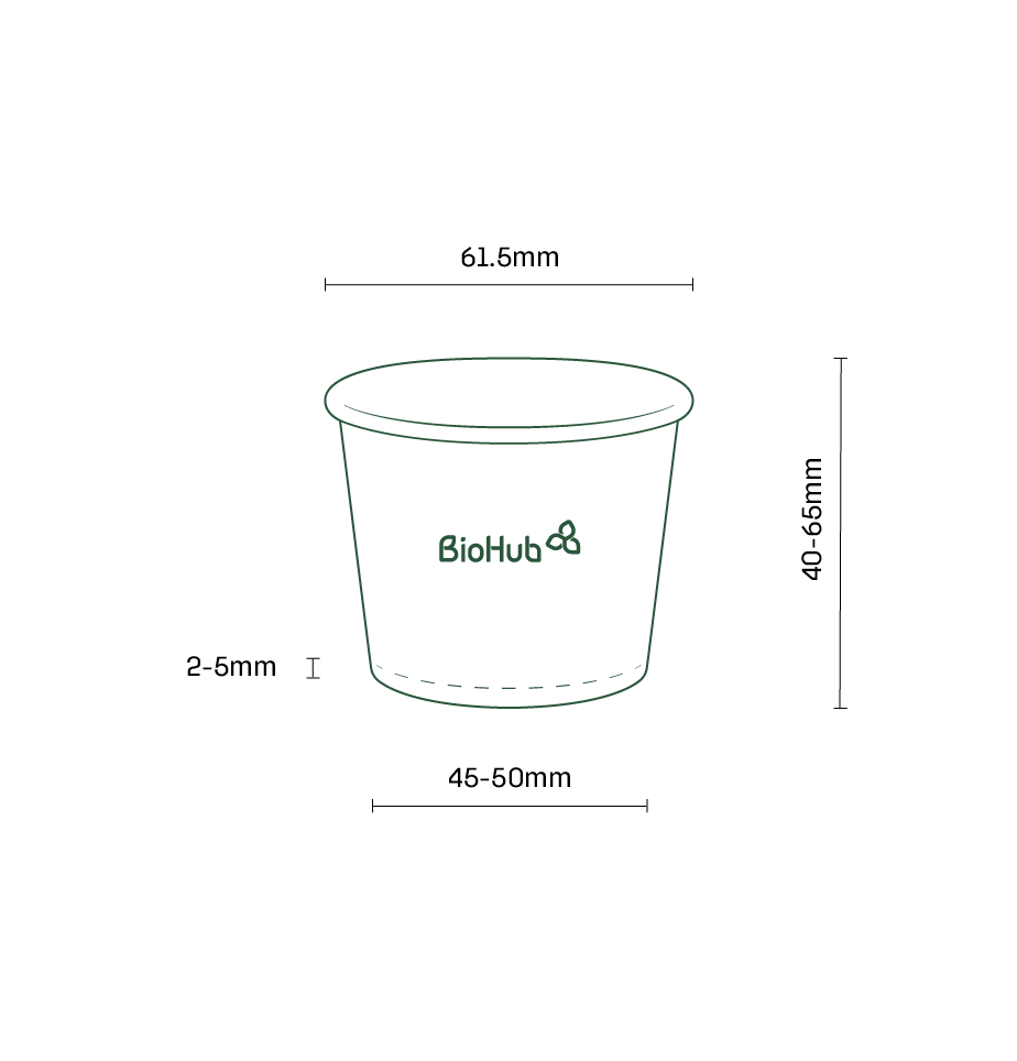 The BioHub sauce cup with lid is a 100% eco-friendly product that offers exceptional resistance to moisture and grease without the use of harmful chemicals or traditional plastic materials.
